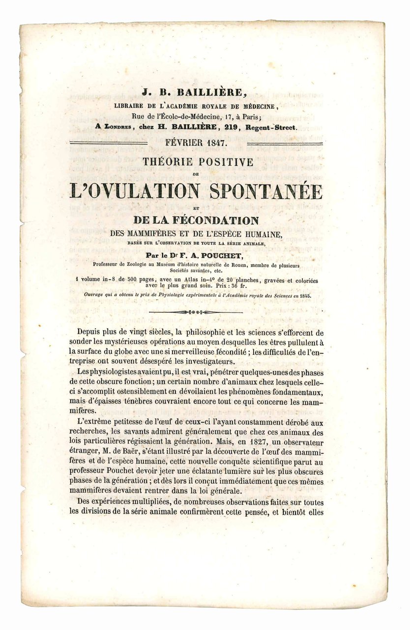 - Théorie positive de l'ovulation spontanée. et de la fécondation des mammiféres et de l'espéce humaine ... Par le Dr. A. Pouchet.
