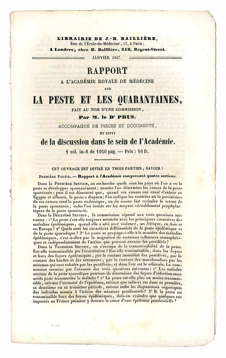 - Rapport. a l'Académie Royale de Médecine sur la peste et les quarantaines ... par. M. le Dr. Prus.