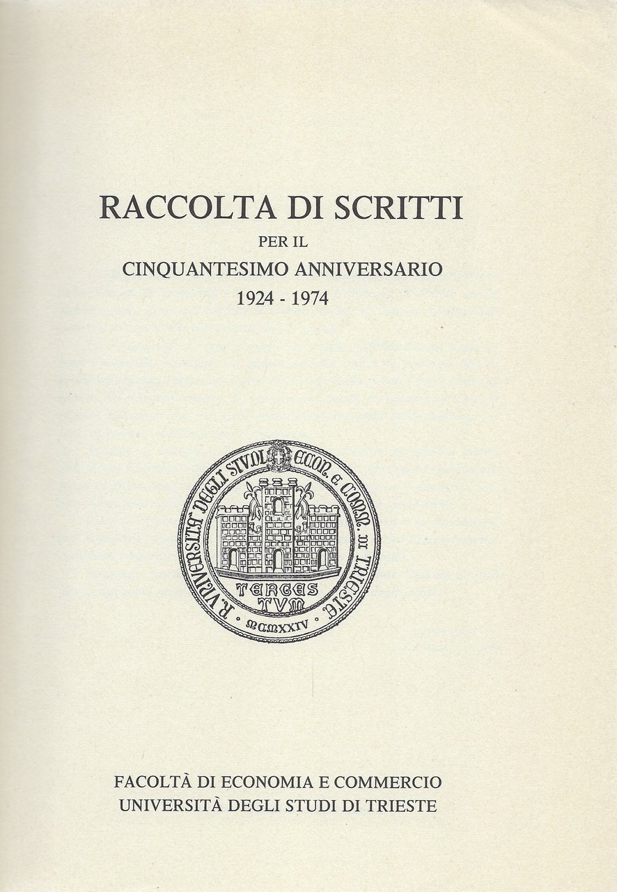 Raccolta di scritti per il cinquantesimo anniversario 1924 - 1974 - Facoltà di Economia e Commercio degli Studi di Trieste