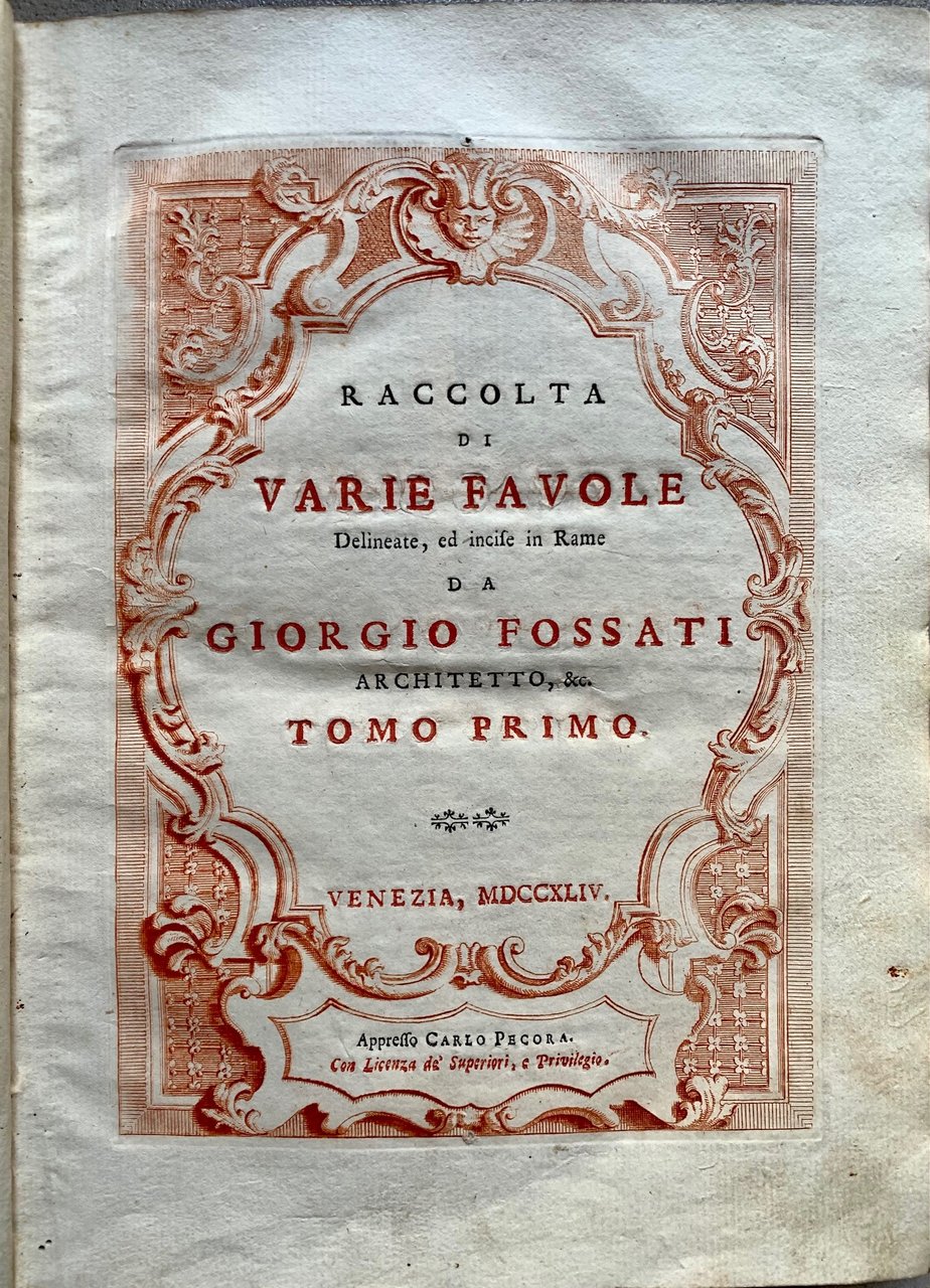 L'autore Giorgio Fossati (Morcote in Canton Ticino, 1706 - Venezia 1785), allievo di Domenico Rossi, fu architetto, scenografo, incisore ed illustratore di libri; attivo a Venezia, dove risiedette dal 1716. A lui si deve l'innovativa tecnica di impreziosire le edizioni imprimendovi le illustrazioni in colore, tecnica che fu poi in genere applicata ad un limitatissimo numero di esemplari di poche eleganti edizioni veneziane. La presente opera, raffinatissima impresa editoriale, apparsa in piena atmosfera barocca, è il capolavoro del Fossati: la sua rappresentazione degli animali è realistica e personale, e notevole è l'ambientazione delle scene in contesti con architetture barocche.