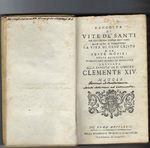 Raccolta Di Vite De' Santi Per Ciaschedun Giorno Dell'anno Alle Quali Si Premettono La Vita Di Gesù Cristo E Le Feste Mobili Nuova Edizione Riveduta Dall'autore, Ed Accresciuta Dedicata Alla Santità Di N. Signore Clemente Xiv. Maggio - Giugno