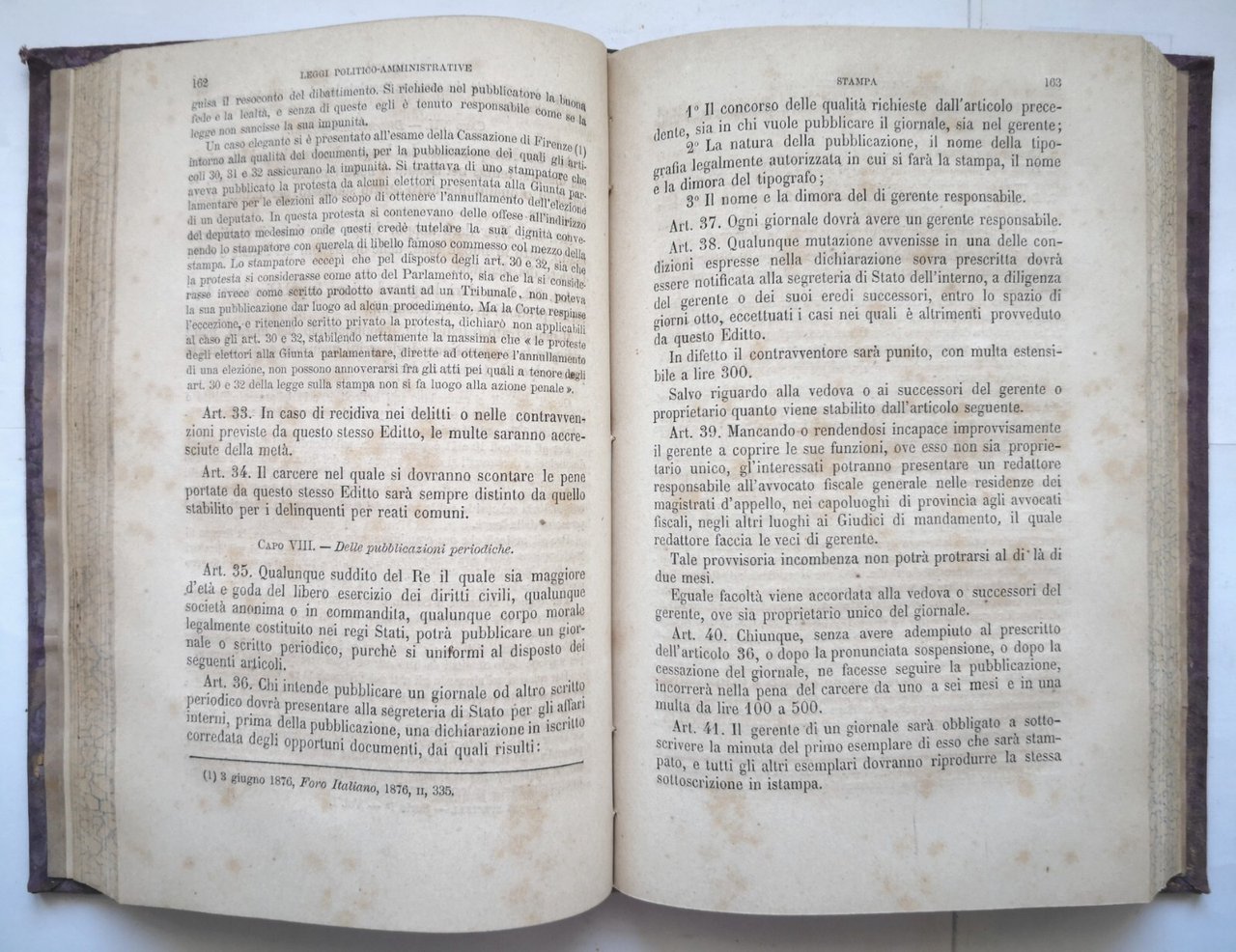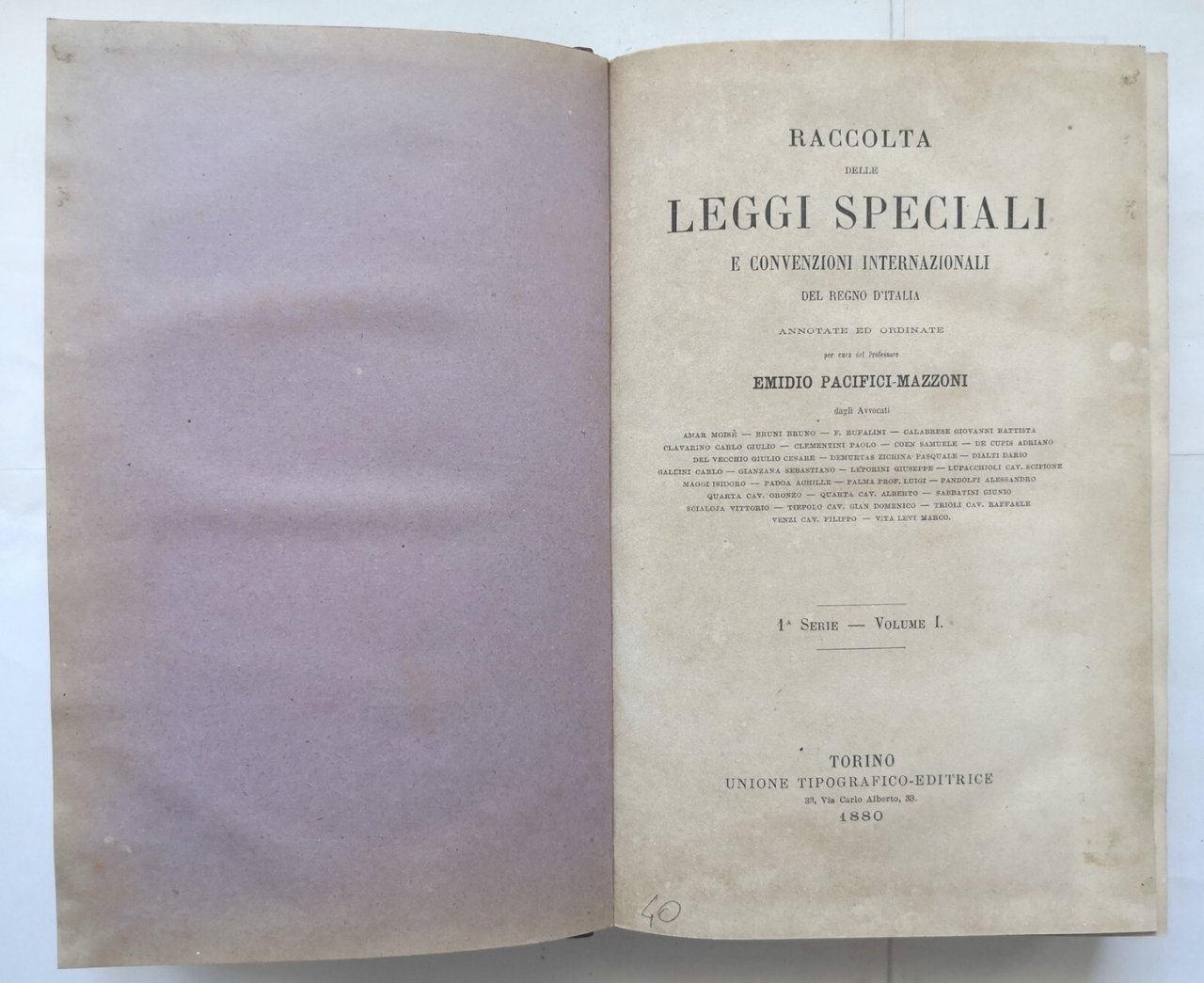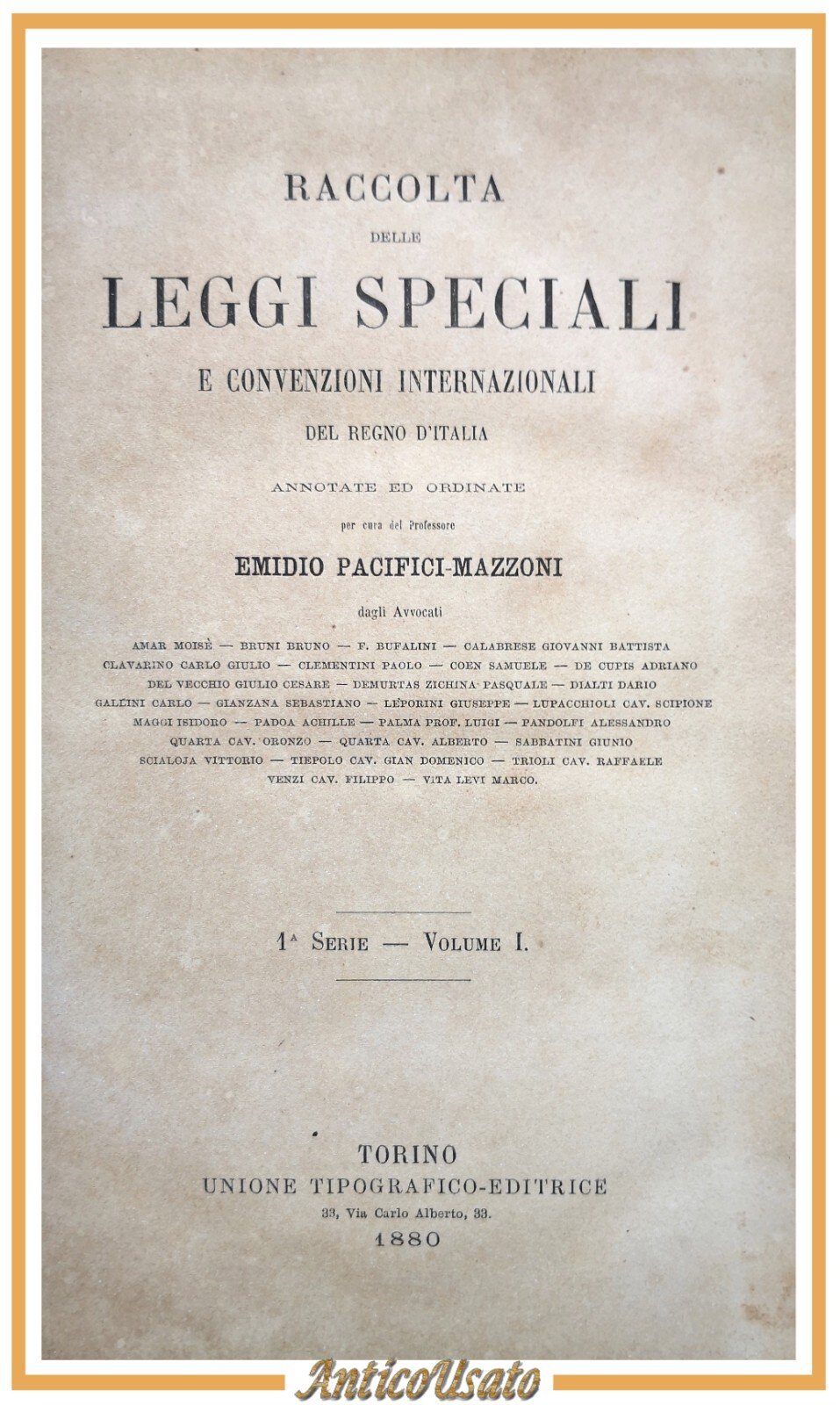 RACCOLTA DELLE LEGGI SPECIALI E CONVENZIONI INTERNAZIONALI DEL REGNO D'ITALIA annotate ed ordinate per cura del Professore Emidio Pacifici-Mazzoni. 1 serie - volume I.