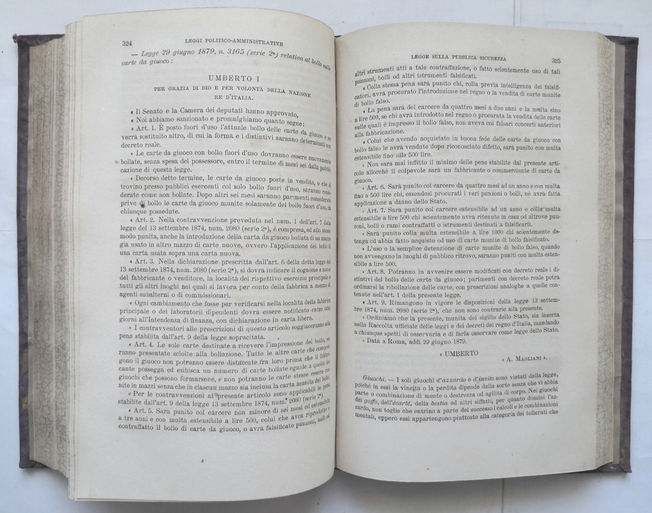 RACCOLTA LEGGI SPECIALI E CONVENZIONI INTERNAZIONALI REGNO D'ITALIA 1880 Libro