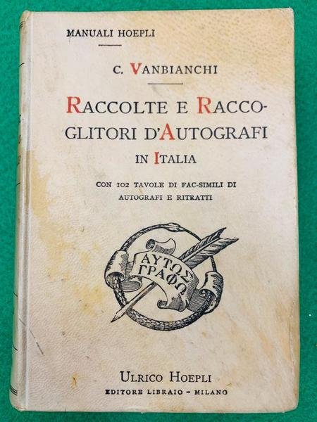 Raccolte e raccoglitori di autografi in Italia con 102 tavole di fac-simili di autografi e ritratti.