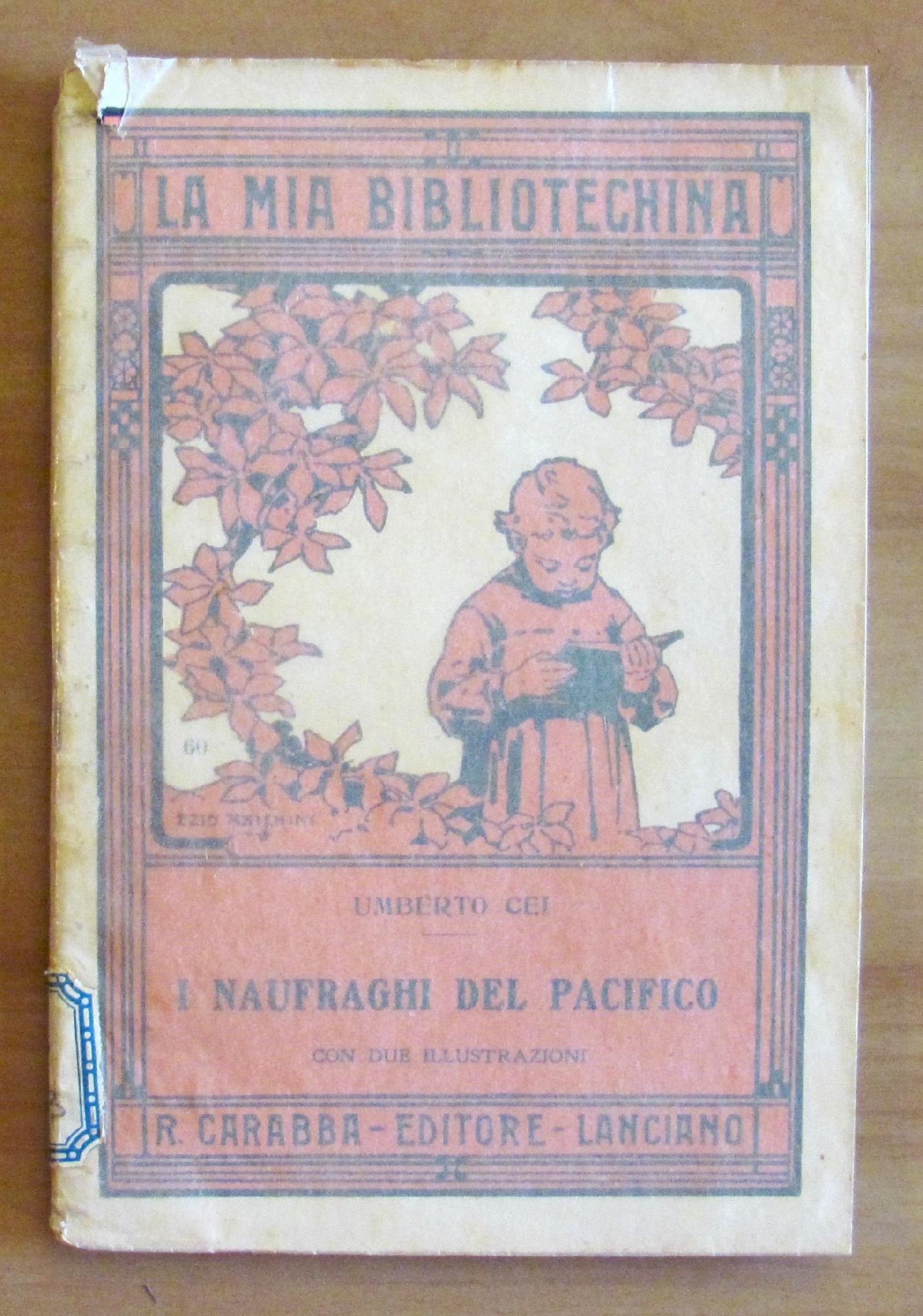 Raccoltina - La Mia Bibliotechina - Collana di letture per fanciulli e fanciulle - Racconti, novelle, fiabe, avventure, viaggi ecc. Contiene: N.60 Umberto Cei - I naufraghi del Pacifico con 2 illustrazioni monocromatiche a piena pagina di Diamantini; N.1 L. Capuana - La fiaba d'una mamma con 5 illustrazioni monocromatiche n.t. di G. Davico; N.13 A. Tortoreto - Il ciuchino puro sangue con 2 illustrazioni monocromatiche a piena pagina di G. Bruno (?). Belle copertine virate in rosso e nero a ciascun fascicolo di Ezio Anichini. Editore R. Carabba - Lanciano, 1932. Brossura editoriale con sovraccoperta acetata di vecchia Biblioteca, come da timbri all'occhietto, contenente le ulteriori due brossure originali complete, ante e retro, come da foto. 13x19; pagine 24 per ciascun fascicoletto. Rara e in Ottimo stato. , Ottimo (Fine)