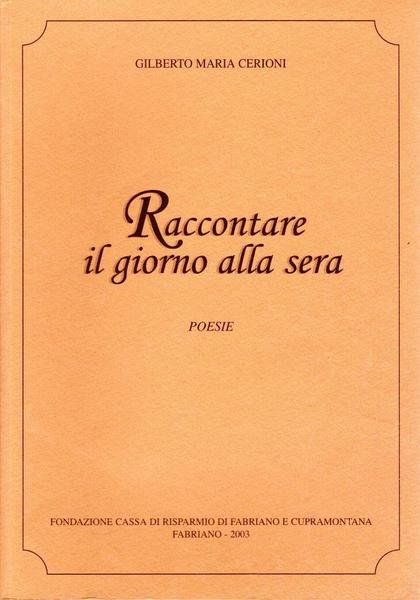 Raccontare il giorno alla sera, seconda edizione febbraio 2003, pp. 350, formato 17 x 24.<BR>Copertina morbida color ocra con titoli in marrone al piatto anteriore e sulla costola. Edizione a cura di Riccardo Ceccarelli.<BR>Ottime condizioni.