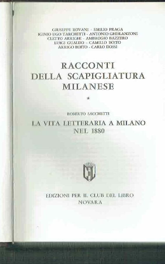 RACCONTI DELLA SCAPIGLIATURA MILANESE ** R. SACCHETTI