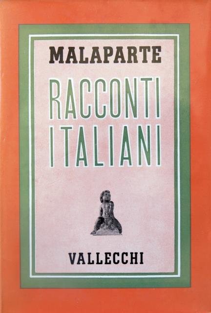 Firenze, Vallecchi Editore, 1957 (prima edizione). Curati da Enrico Falqui, I “Racconti italiani” danno inizio alla pubblicazione delle opere complete di Malaparte. In 8vo, pp. 378 con Indice, leg. in t. tela arancione, sovracop. illustrata al piatto. Usuali difetti alla sovracoperta, ingiallimento al taglio superiore e fioriture ai contropiatti e alle prime bianche, buono stato di conservazione.