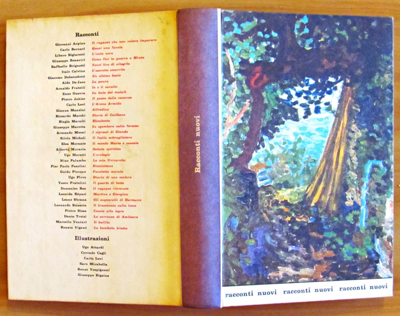 6 tavole a colori f.t., di cui 3 ripiegate, di Attardi, Cagli, Levi, Mirabella, Vespignani e Zigaina. 34 racconti di diversi autori, tra i quali: Calvino, Levi, Morante, Moravia, Pasolini, Piovene, Pratolini, Sciascia... Ed. Riuniti Pioniere - Roma, I edizione 1960. Tela editoriale. 16x25; pp.230. RARO. OTTIMO STATO , Ottimo (Fine)