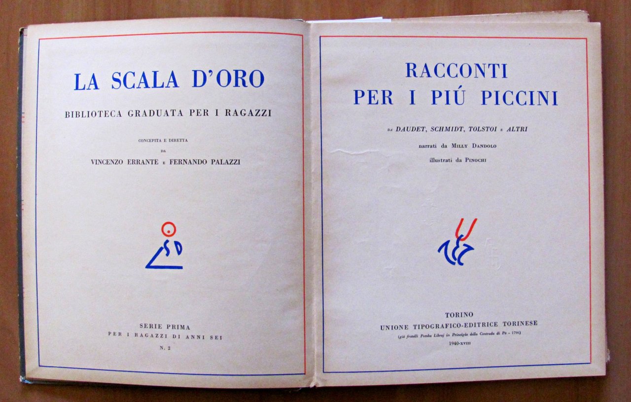 Illustrazioni n.t., anche a piena pagina, di Pinochi. Edizioni U.T.E.T. - Torino, 1940. Cartonato editoriale con cerniere del dorso usurate e piccolo restauro alla parte bassa dello stesso. 21x25; pp.62. RARO IN QUESTA EDIZIONE. BUONO STATO  , Molto buono (Very Good)