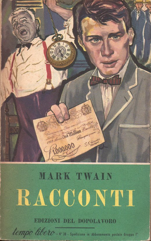 In-16° (18,9 x 11,9 cm), pp. 254, (2), copertina editoriale illustrata a colori. Qualche traccia d'uso e del tempo alla copertina, in particolare, leggera arrossatura al dorso e nella parte destra della quarta di copertina. Con alcune figure in bianco e nero nel testo. Piccoli, leggeri segni d'umido al taglio di testa e all'occhietto. Tra la seconda di copertina e l'occhietto, nella parte inferiore, piccolo rinforzo in carta giapponese. Nel margine inferiore delle pagine dalla 17 alla 30, strappetto e minime mancanze, molto lontano dal testo, ben sistemati con carta giapponese. Per il resto, in buono stato. Traduzioni di Pietro Leoni, Bruno Oddera, Franca Piazza. Stampa O.G.A.M. Verona. Indice: Il mio orologio. Alcune favole erudite per i buoni vecchi bambini e per le buone vecchie bambine. Incoraggiamento agli assassini. Un sogno curioso. I fratelli siamesi. Cannibalismo in ferrovia. Una curiosa escursione di piacere. Una visita misteriosa. Storia privata d'una campagna militare che fallì. Un'esperienza curiosa. La signora McWilliams e il fulmine. La banconota da un milione di sterline. Telegrafia mentale. Come curare la malinconia. Appunti sparsi su una gita di piacere. La grande rivoluzione di Pitcairn. Dissertazione sui neonati.