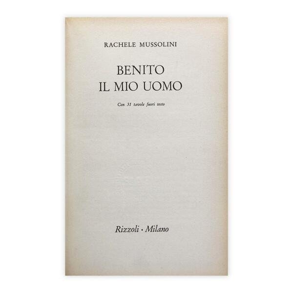 Autore: Rachele Mussolini Titolo: Benito il mio uomo Sottotitolo: con 31 tavole fuori testo Edizione: Rizzoli Milano 1958 - Prima Edizione Dimensioni: 15 x 22,5 cm c.a. Pagine: 313 Copertina: Cartonato Condizioni: Buone come da foto