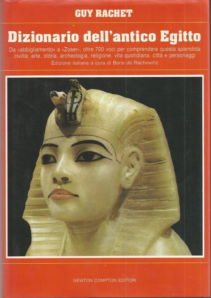 Guy Rachet, Dizionario dell’antico Egitto. Da abbigliamento a Zoser, oltre 700 voci per comprendere questa splendida civiltà: arte, storia, archeologia, religione, vita quotidiana, città e personaggi, edizione italiana a cura di Boris de Rachewiltz, Newton Compton editori, Roma 1991, prima ed., pp. 329, ill. b.n., cm 25, cart. ed. con titoli al dorso e sovraccoperta. Collana Paperbacks Civiltà Scomparse. Serie Panorami archeologici, vol. 69. Titolo originale: L’Égypte ancienne. Traduzione di Simonetta Traversetti. Minime tracce d’uso alla sovraccoperta, per il resto perfetto.