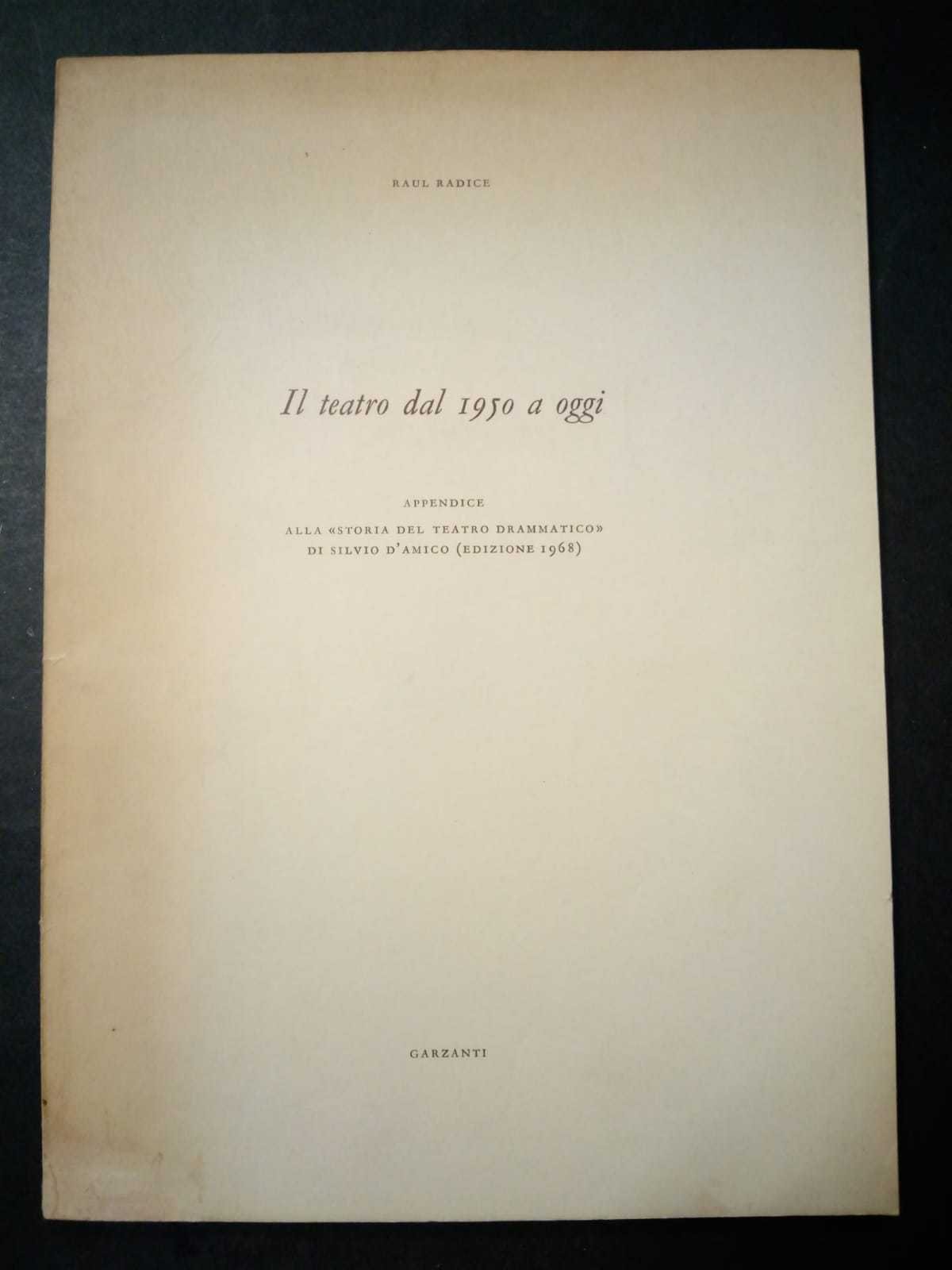 923 Radice Raul Radice Raul. Il teatro dal 1950 a oggi. Appendice alla storia del teatro drammatico di Silvio D'Amico. Garzanti. 1968. Milano , Garzanti 1968 italiano, pp.278 11314