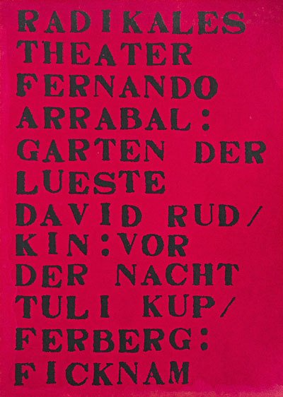 Radikales Theater Fernando Arrabal., Garten der Lüste. David Rudkin: Vor der Nacht. Tuli Kupferberg: Ficknam