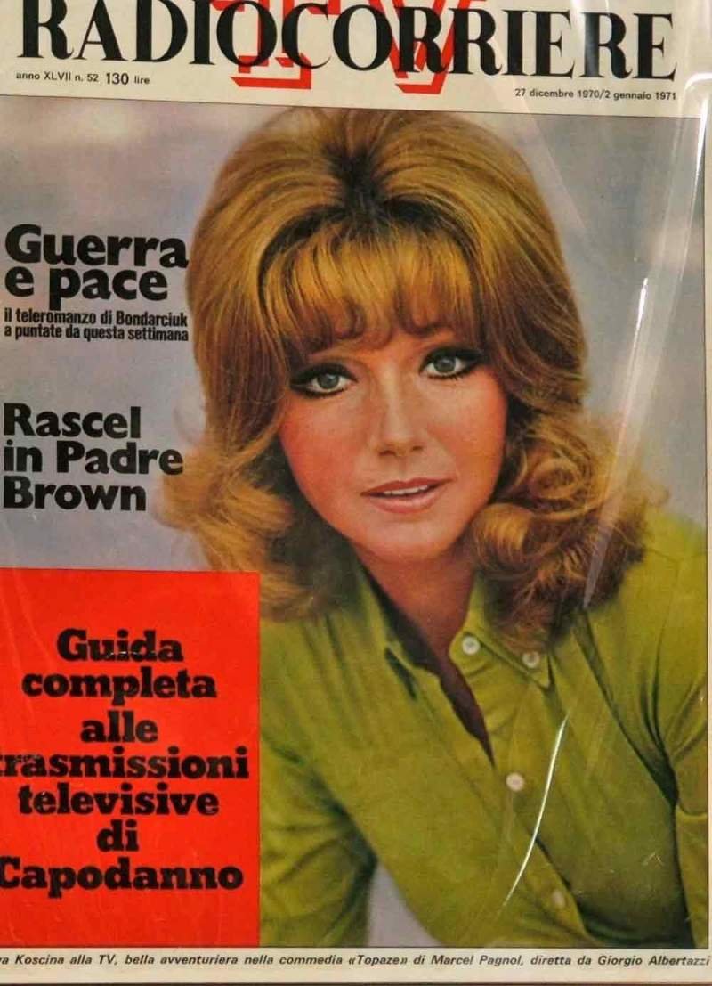 Tra gli articoli: Sylva Koscina nella commedia "Topaze" diretta da Giorgio Albertazzi. Guida completa alle trasmissioni di capodanno. "Guerra e Pace" il teleromanzo di Bondarciuk. Rascel in Padre Brown. Anno pubblicazione 1971Materia/Argomento Riviste e periodici ***Due to bureaucratic reasons, books dated over 70 years old cannot be immediately exported, please contact us before placing the order.***