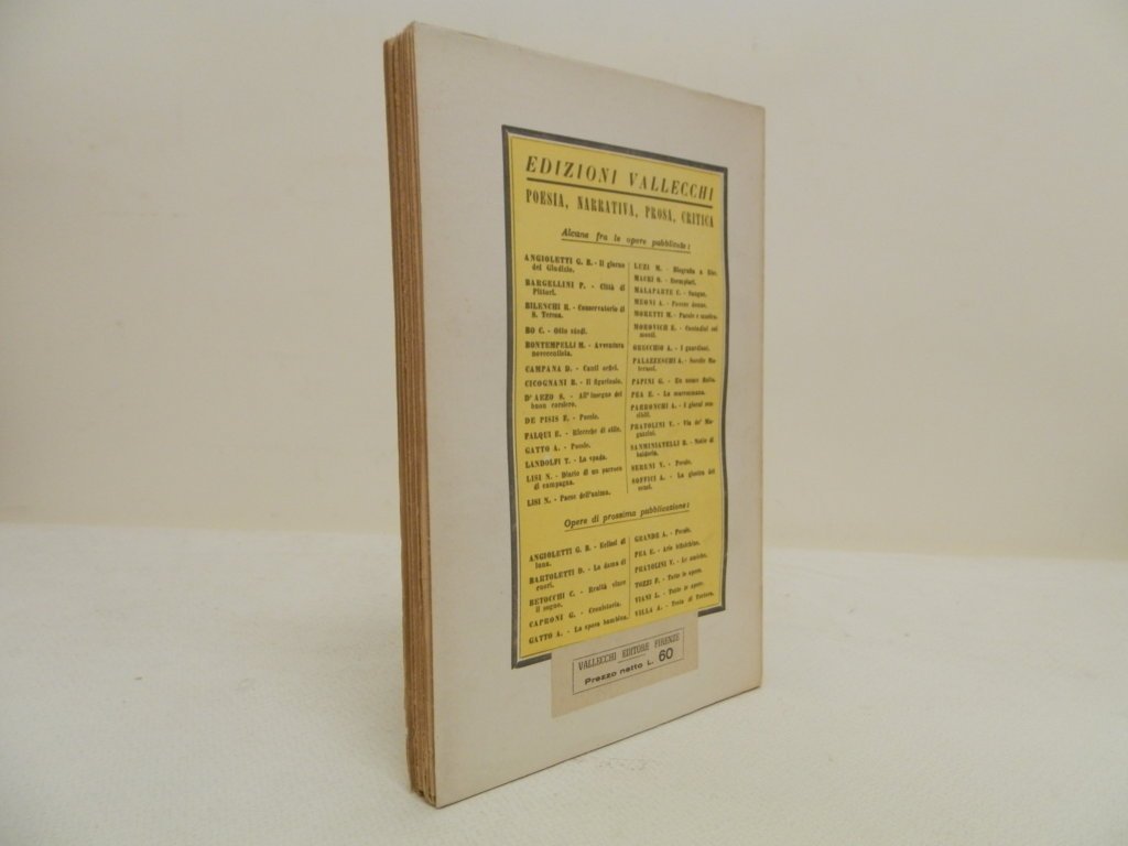 16°, mm 195x130, pp. 167, (5), brossura editoriale, ottimo stato di conservazione, alone di polvere al dorso ed in maniera molto più lieve ai margini del testo, ex libris applicato al contropiatto. . *** TUTTI I NOSTRI LIBRI SONO VISIBILI PREVIO CONTATTO MAIL O TELEFONO NELLA NUOVA SEDE DI MILANO: LIBRERIA COSMOPOLIS, VIA JOMMELLI, 22. ***