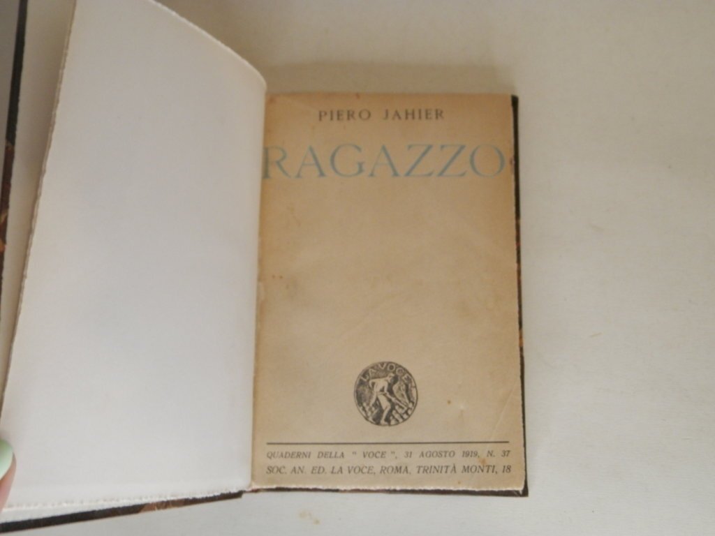 8°, 20 cm, pp. 132, legatura non editoriale in mezza pelle con angoli, piatti marmorizzati, titoli in oro al dorso. Minimi segni del tempo alla legatura, dedica in penna al margine superiore della terza carta bianca, peraltro ottimo esemplare. Quaderni della "Voce", 31 agosto 1919, n. 37.. *** TUTTI I NOSTRI LIBRI SONO VISIBILI PREVIO CONTATTO MAIL O TELEFONO NELLA NUOVA SEDE DI MILANO: LIBRERIA COSMOPOLIS, VIA JOMMELLI, 22. ***