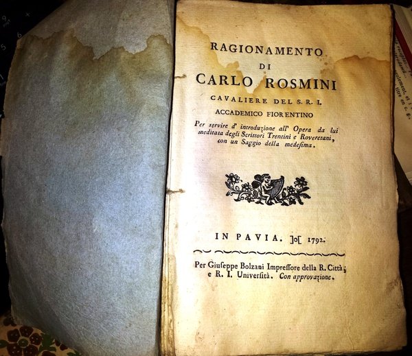 Ragionamento di Carlo Rosmini cavaliere del S. R. L. accademico fiorentino. Per servire d'introduzione all'Opera da lui meditata degli Scrittori Trentini e Roveretani, con un saggio della medesima.