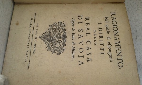 RAGIONAMENTO, nel quale si espongono i diritti della Real Casa di Savoja sopra lo Stato di Milano
