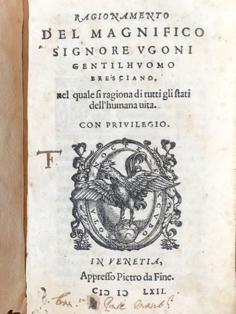Ragionamento nel quale si ragiona di tutti gli stati dell'humana vita. Discorso della dignità et eccellenza della gran città di Venezia. Dialogo della vigilia, et del sonno. Trattato della impositione de' nomi.