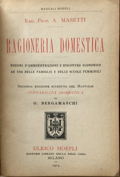- Manuali Hoepli, Libri Vintage, Antichi Manuali, Guide, Economia domestica, Organizzazione familiare, Contabilità, Ragioneria, Finanza, Risparmio, Donne, Partita doppia