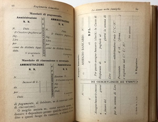 Soggetti: Libri Vintage, Antichi Manuali, Guide, Prontuari, Economia domestica, Governare la Casa, Gestione, Organizzazione familiare, Contabilità, Ragioneria, Fare i conti, Finanza personale, Risparmio, Donne, Genere, Ruoli, Spesa, Pratica, Inventario, Preventivi, Controllo, Patrimonio, Rendiconto, Partita doppia, Scolastici, Liquidazione, Bilancio, Assicurazione, Vita quotidiana, Incendio, Furto, Rendite vitalizie, Patria potestà, Norme, Animali domestici, Dare, Avere, Debiti, Credito, Fornitori, Ammontare, Scadenze, Pagamenti, Legislazione, Diritto, Madri, Figli, Entrate, Uscite, Libri rari, fuori catalogo, Manualetti, Studio, Novecento, Registri, Libri contabili, Tabelle, Home economics, Italy, Women, Finance, Handbooks, Manuals, Ancient Manuals, Guides, Booklets, Home Economics, Home Governance, Management, Family Organization, Personal Finance, Savings, Women, Gender, Roles, Spending, Practice, Inventory, Estimates, Control, Assets, Report, Double match, Scholastic, Liquidation, Balance sheet, Insurance, Daily life, Fire, Theft, Annuities, Custody, Rules, Pets, Give, Have, Debts, Credit, Suppliers, Amount, Deadlines, Payments, Legislation, Law , Mothers, Children, Revenue, Expenses, Rare Books, Out of Print/stock, Manuals, Study, Twentieth Century, Registers, Accounting Books, Tables, Collezionismo, Collectibles