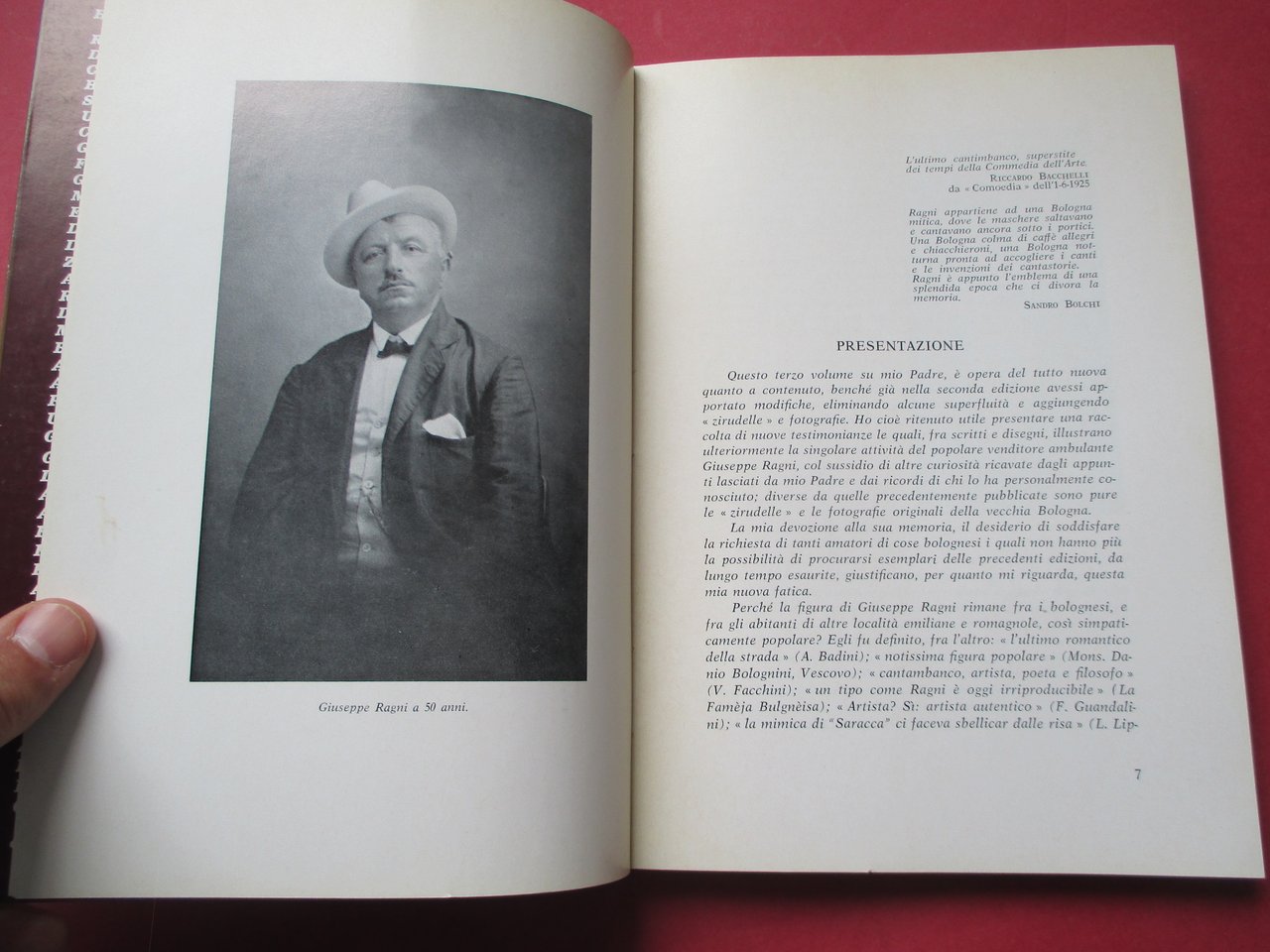 Ragni. Una figura popolare della vecchia Bologna ( 1867 – 1919 ). Nuove testimonianze nei ricordi di chi lo conobbe di persona o di fama.