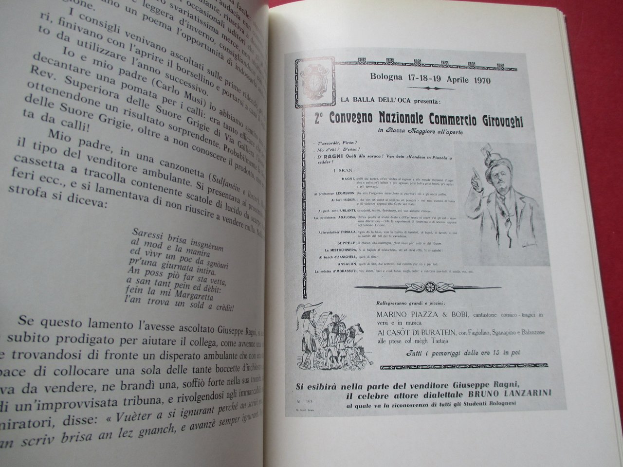 In – 8vo, brossura editoriale illustrata, pp. 214 ( 2 ). Terza edizione. Con 33 " Zirudelle " inedite, aneddoti, facezie di Giuseppe Ragni; 16 disegni e 100 illustrazioni fotografiche in nero nel testo. Scritti Riccardo Bacchelli, Dino Berti, Gino Cervi, Franco Cristofori, Arrigo Lucchini, Mario Landi, Arnaldo Gentili, Gino Marzocchi, Augusto Panighi, Bruno Saetti, Giuseppe Dozza, Cleto Tomba, Athos Vianelli e altri. Bibliografia.