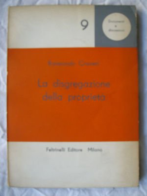 RAIMONDO CRAVERI LA DISGREGAZIONE DELLA PROPRIETA' FELTRINELLI ED. 1958In 8°, pag. 127, legatura editoriale.Nella collana “ documenti e discussioni “In buonissime condizioni, pagine leggermente brunite ai margini, strappo in penultima pagine, sull'indice.