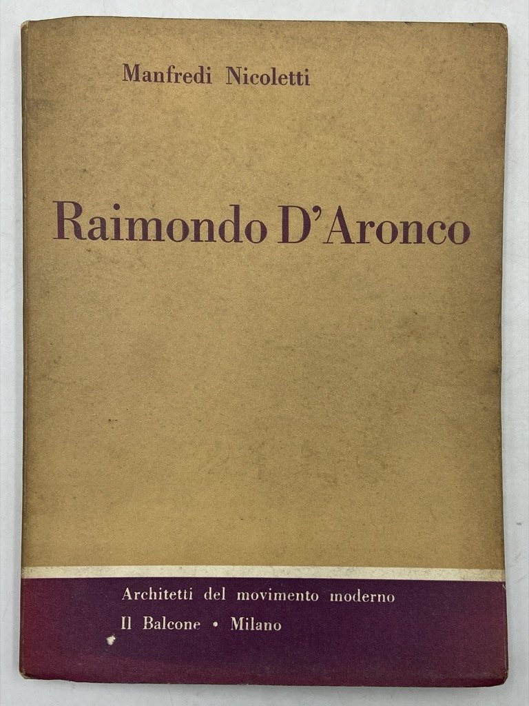 Brossura, cm 17x12.5, pp 125 (3); numerose tavole in nero. Prima edizione, stampata dalla Tipografia E. Toffaloni nel maggio 1955. Impaginazione di Lanfranco Bombelli Tiravanti; a cura di Massimo Carrà. Numero 14 della Collana Architetti del movimento moderno, diretta da Ludovico Belgiojoso, Enrico Peressutti e Ernesto N. Rogers in memoria di Gianluigi Banfi.Testo critico, biografia, regesto delle opere, bibliografia; numerose fotografie, disegni e progetti dell’architetto tra gli iniziatori dell’Art Nouveau, Raimondo D’Aronco (Gemona del Friuli 1857 - San Remo 1932).