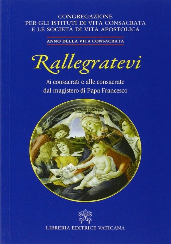 72 pagine. Brossura. VOLUME IN OTTIME CONDIZIONI. La Congregazione per gli Istituti di Vita consacrata e le Società di Vita apostolica propone con questa lettera alle persone consacrate, tratta dal magistero di Papa Fratesco, un itinerario di riflessione personale verso l'anno 2015 che la Chiesa dedica alla Vita consacrata. Uno strumento di meditazione che possa accompagnare i consacrati e le consacrate nelle loro decisioni evangeliche.