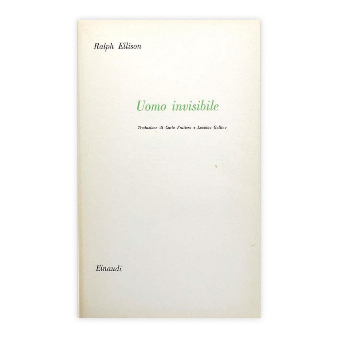 Autore: Ralph Ellison Titolo: Uomo Invisibile Sottotitolo: Traduzione di Carlo Fruttero e Luciano Gallino Edizione: Einaudi editore 1956 - Seconda edizione Dimensioni: 14 x 22,5 cm c.a. Pagine: 545 Copertina: Cartonato Condizioni: Ottime come da foto