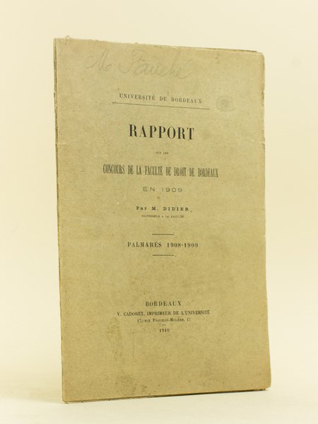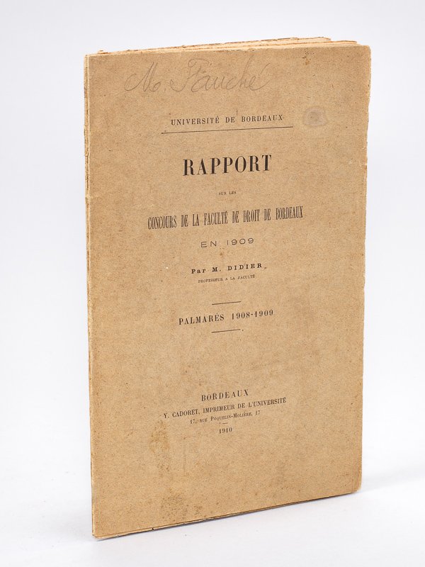 Rapport sur les Concours de la faculté de Droit de Bordeaux en 1909. Palmarès 1908-1909