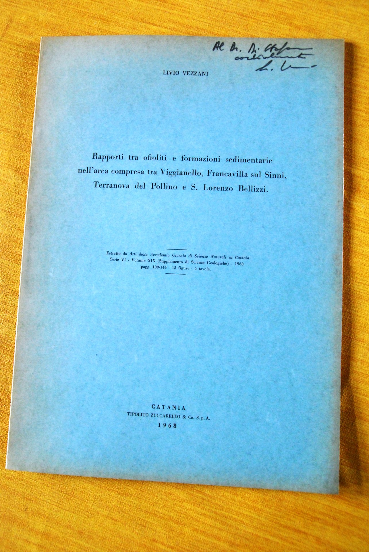 livio vezzani rapporti tra ofioliti e formazioni sedimentarie nell'area compresa tra viaggianello francavilla sul sinni terranova del pollino s. lorenzo bellizzi. .