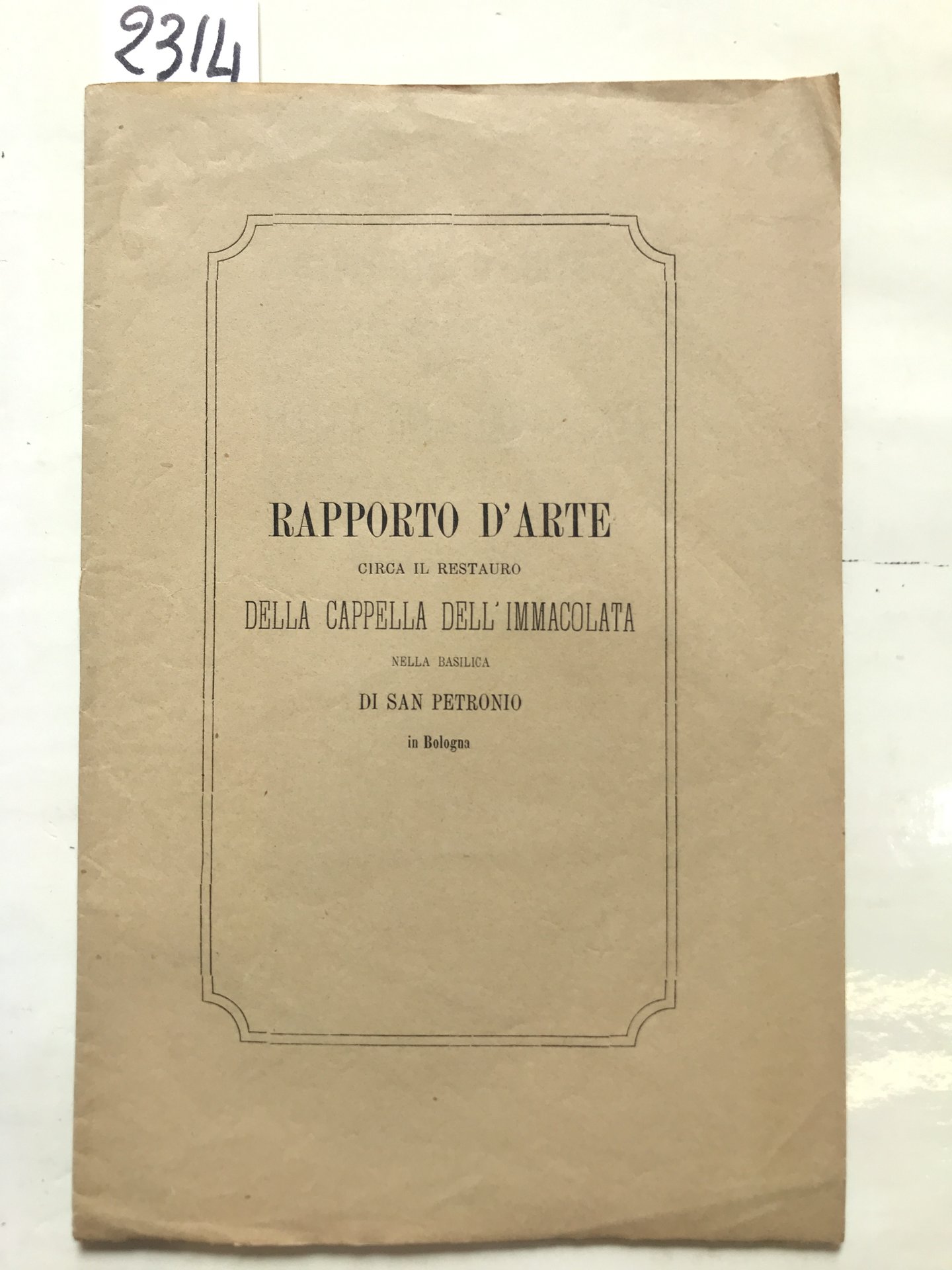 RAPPORTO D'ARTE CIRCA IL RESTAURO DELLA CAPPELLA DELL'IMMACOLATA NELLA BASILICA DI S. PETRONIO IN BOLOGNA.