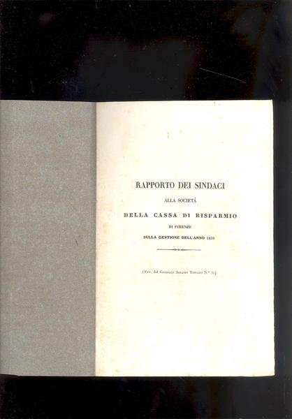 RAPPORTO DEI SINDACI ALLA SOCIETA' DELLA CASSA DI RISPARMIO DI FIRENZE<BR>SULLA GESTIONE DELL'ANNO 1838.