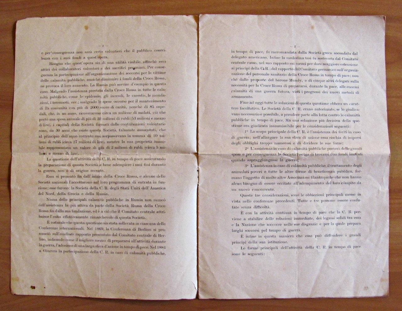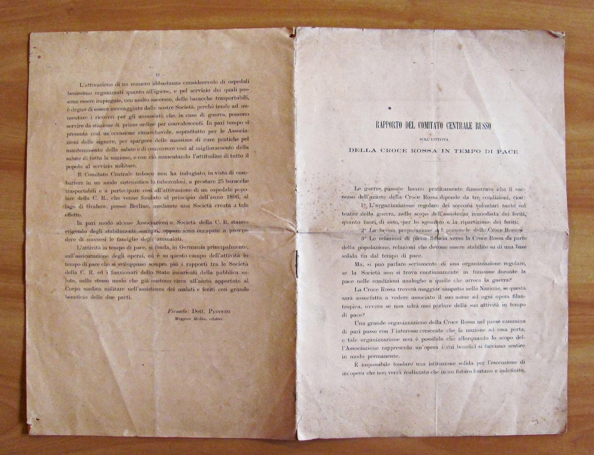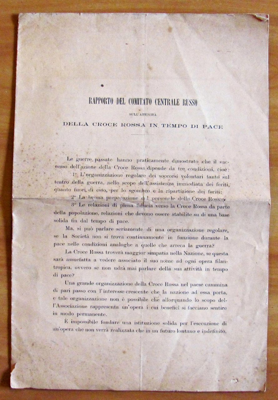 RAPPORTO DEL COMITATO CENTRALE RUSSO SULL'ATTIVITA' DELLA CROCE ROSSA IN TEMPO DI PACE