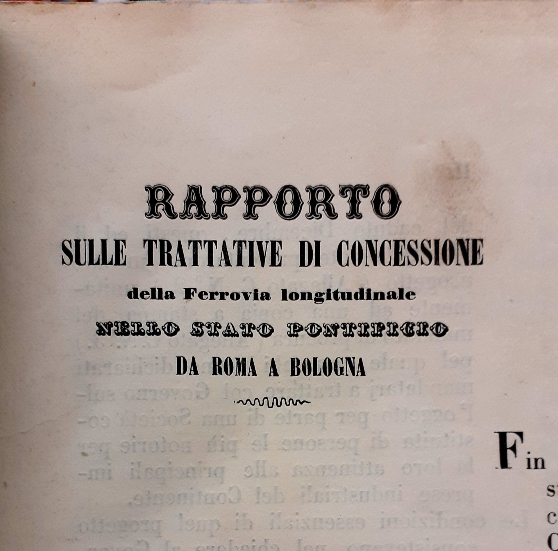 RAPPORTO SULLE TRATTATIVE DI CONCESSIONE DELLA FERROVIA LONGITUDINALE NELLO STATO PONTIFICIO DA ROMA A BOLOGNA.