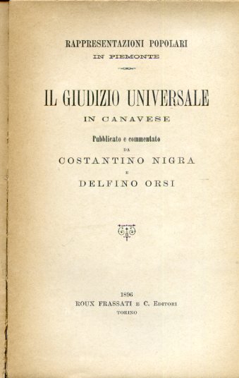 Rappresentazioni popolari in Piemonte. Il Giudizio Universale in Canavese. Pubblicato e commentato da Costantino Nigra e Delfino Orsi