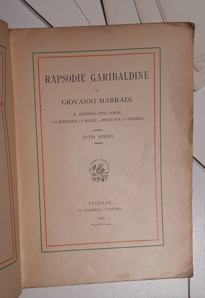 - Giovanni Marradi Rapsodie Garibaldine G. Barbèra