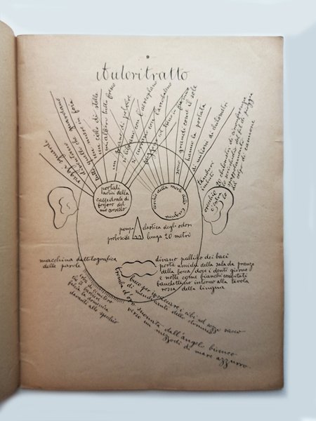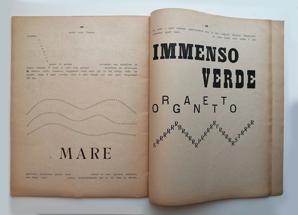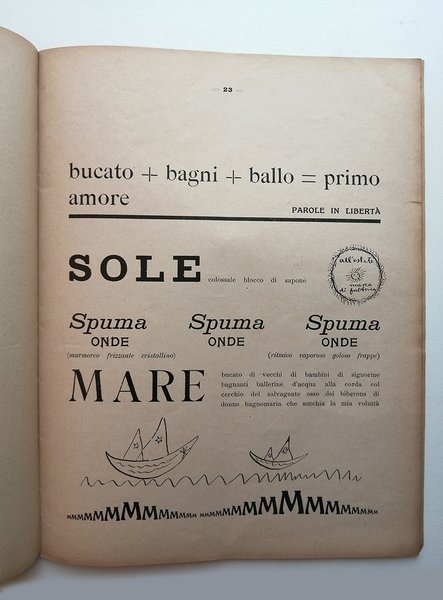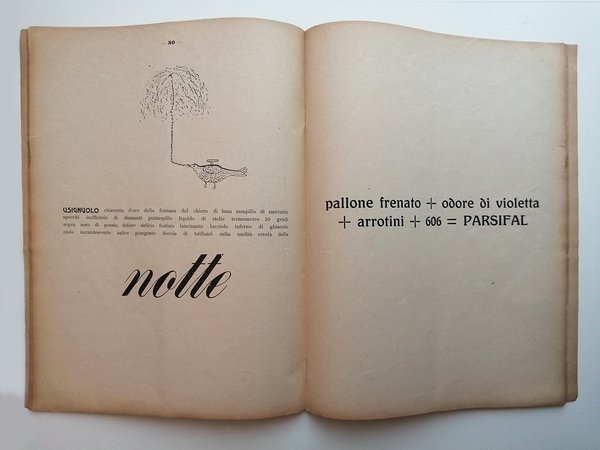 formato 31X24,5. Brossura editoriale pagine 56. EDIZIONE ORIGINALE. Leggeri segni del tempo al piatto di copertina. Piccolissima mancanza all angolo destro di 2 millimetri. MOLTO RARO. In buono stato di conservazione come questo esemplare. Un capolavoro del Futurismo , invenzioni espresse con figurazioni, paroliberismo, rarefazioni poetiche