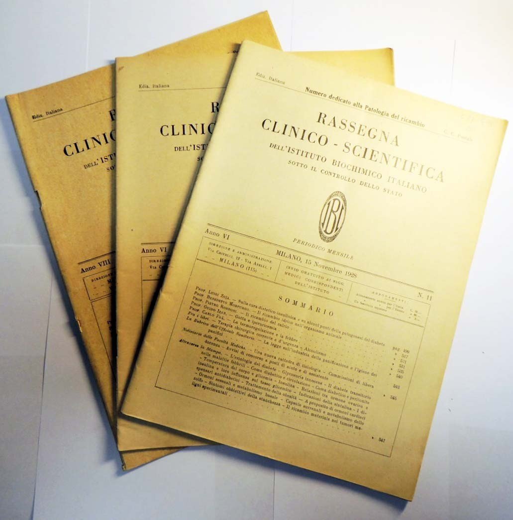 Rassegna clinico scientifica dell’Istituto Biochimico Italiano, 3 numeri, 1928-1930