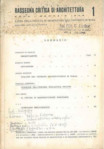 Rassegna critica di architettura. Anno I, Gennaio 1948, n. 1