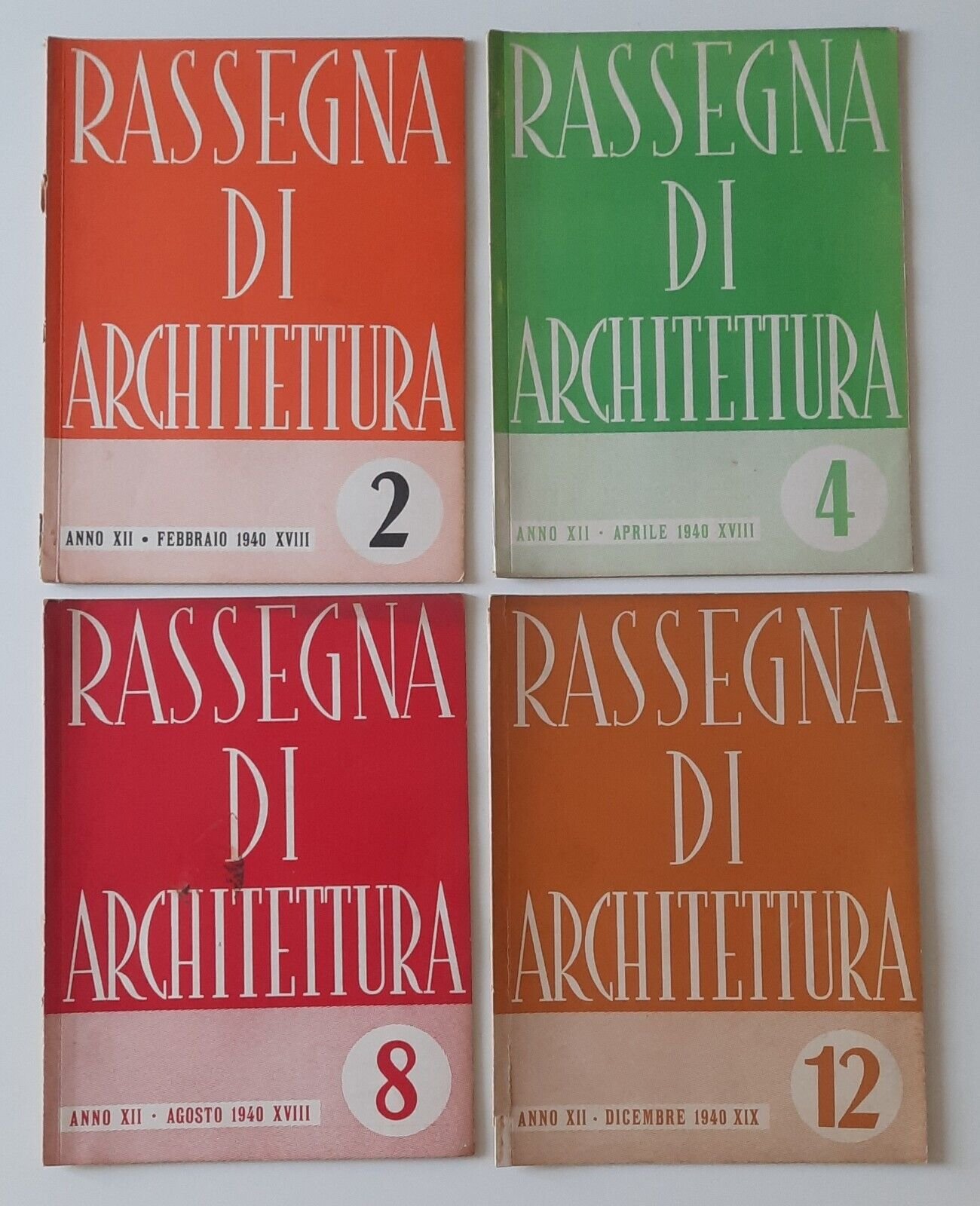 RASSEGNA CRITICA DI ARCHITETTURA NUMERO 2-4-8-12 1940 4 NUMERIIn 4° , legatura editoriale, copertina illustrata, ill. in b/n.Lievissimi segni alla copertina, pagine fresche e pulite.