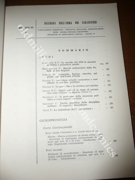 DESCRIZIONE: Tipografia della Scuola Ufficiali Carabinieri Roma 1975, br. ed. pp. da 195 a 384 alcune ill. b/n n.t. a fine vol. in 8°. Rassegna di articoli di vario genere. CONDIZIONI: Buone, vol. con segni d'uso. PESO / WEIGHT: 373 gr. without package