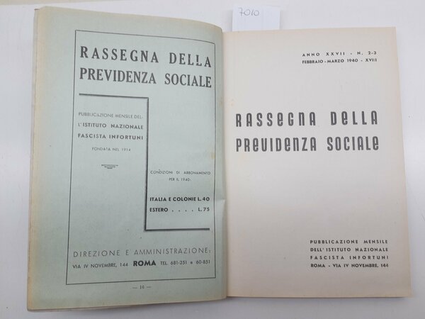 Rassegna della Previdenza Sociale febbraio marzo 1940
