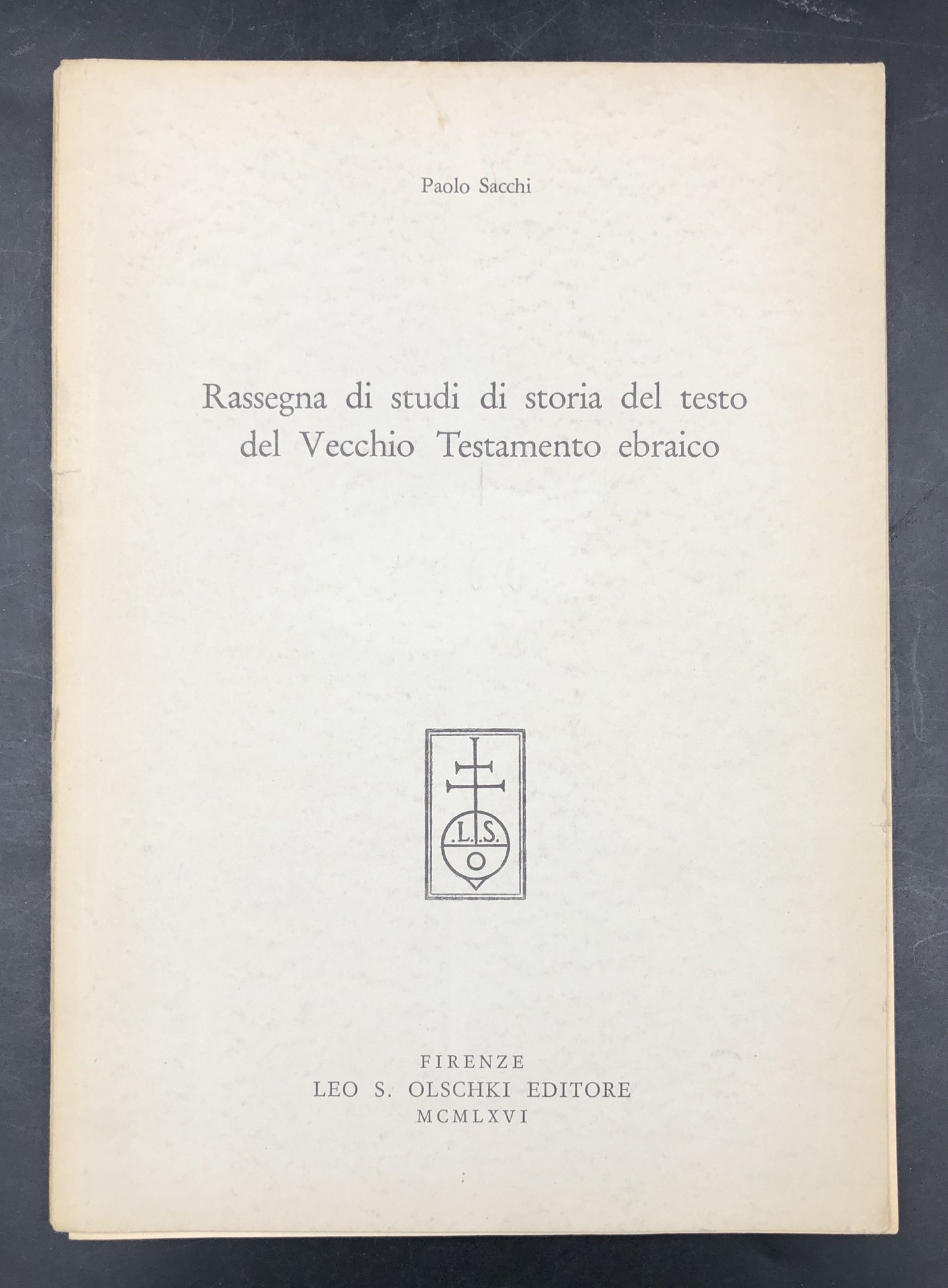Rassegna di studi di STORIA del VECCHIO TESTAMENTO EBRAICO. Estratto originale dalla Rivista di Storia e Letteratura Religiosa, 1966, a. II, n. 2.+ BIBLIOGRAFIA degli scritti di Paolo SACCHI in 4 fogli DATTILOSCRITTI.