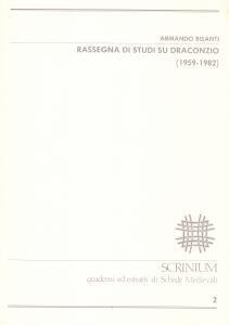 28 pagine. Spillato. cm 17 x 24. Collana: Scrinium. Quaderni ed estratti di Schede Medievali, 2. VOLUME IN BUONE CONDIZIONI, QUALCHE MACCHIA. Commento dell'editore: Questo saggio riproduce, con i dovuti ampliamenti, la lezione tenuta da Armando Bisanti all'Officina, il 2 maggio 1983, sugli studi riguardanti la figura e l'opera di Blossio Emilio Draconzio, uno dei poeti più significativi dell'Africa vandala del V-VI secolo. La letteratura critica esaminata abbraccia un periodo che va dal 1959 anno di pubblicazione dell'ormai classica monografia di Domenico Romano, Studi draconziani al 1982.