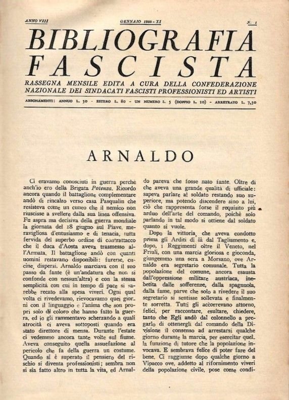 Rassegna mensile edita a cura della confederazione Nazionale dei Sindacati Fascisti Professionisti ed Artisti.